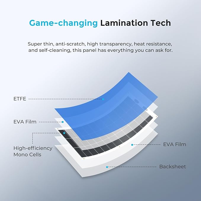 - [Ultra Lightweigh] Thanks to advanced polymer materials, these flexible solar panels weighs 70% less than conventional solar panels, making transportation and installation a breeze